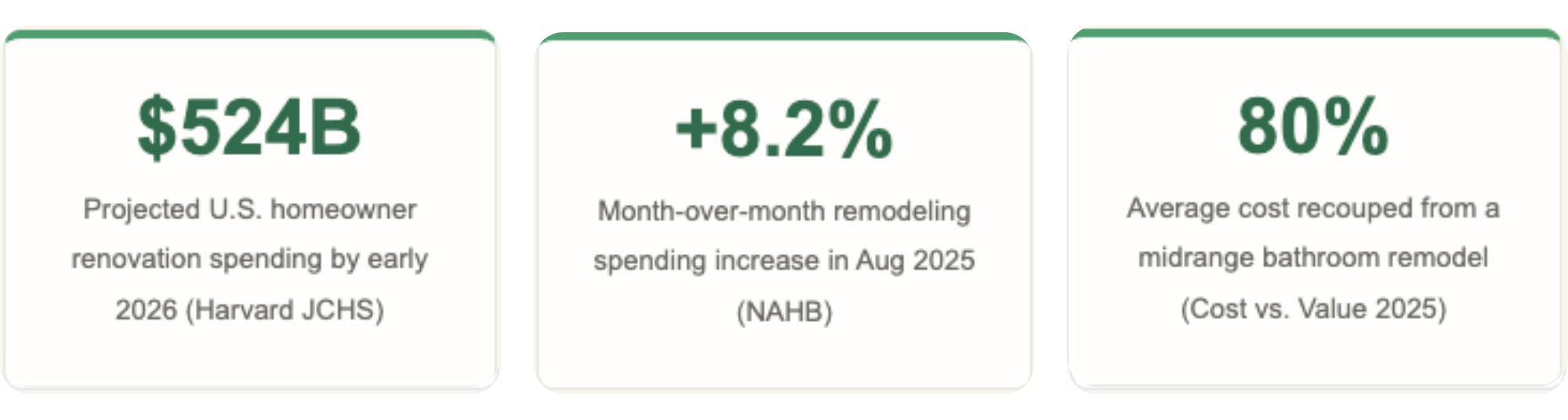 Home renovation spending in the U.S. has remained near record levels even as the broader economy has cooled. Harvard's Joint Center for Housing Studies projects that owner-occupied home improvement spending will reach $524 billion by early 2026 — and their Leading Indicator of Remodeling Activity (LIRA) points to a modest but steady 2.4% growth rate heading into next year.
